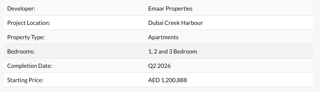 Introducing Cedar at Creek Beach by Emaar Properties. A new low rise apartment project located in one of Dubai’s fastest-growing and most exciting communities – Dubai Creek Harbour.