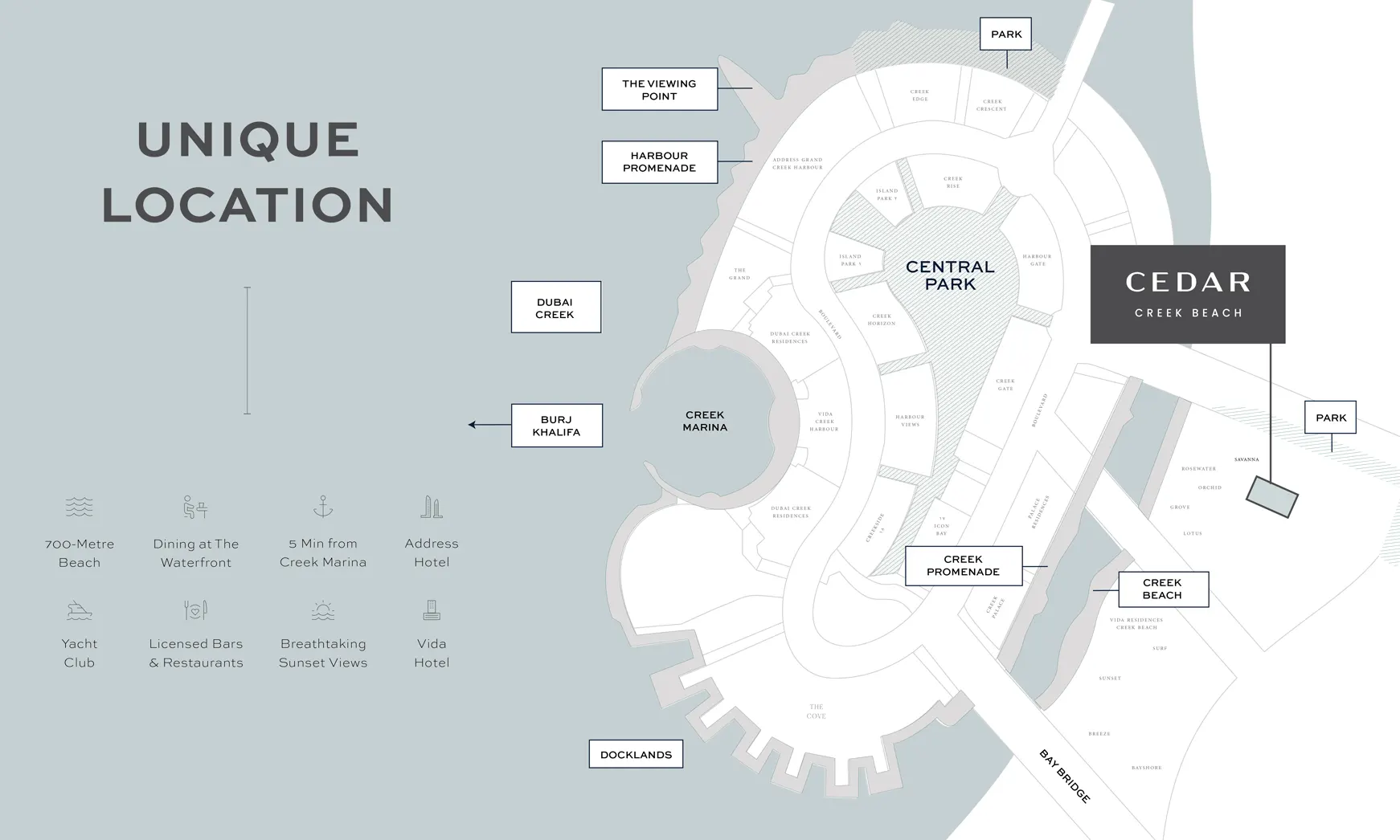 - Located in Creek Beach: a much sought after family friendly sub-community of Dubai Creek Harbour