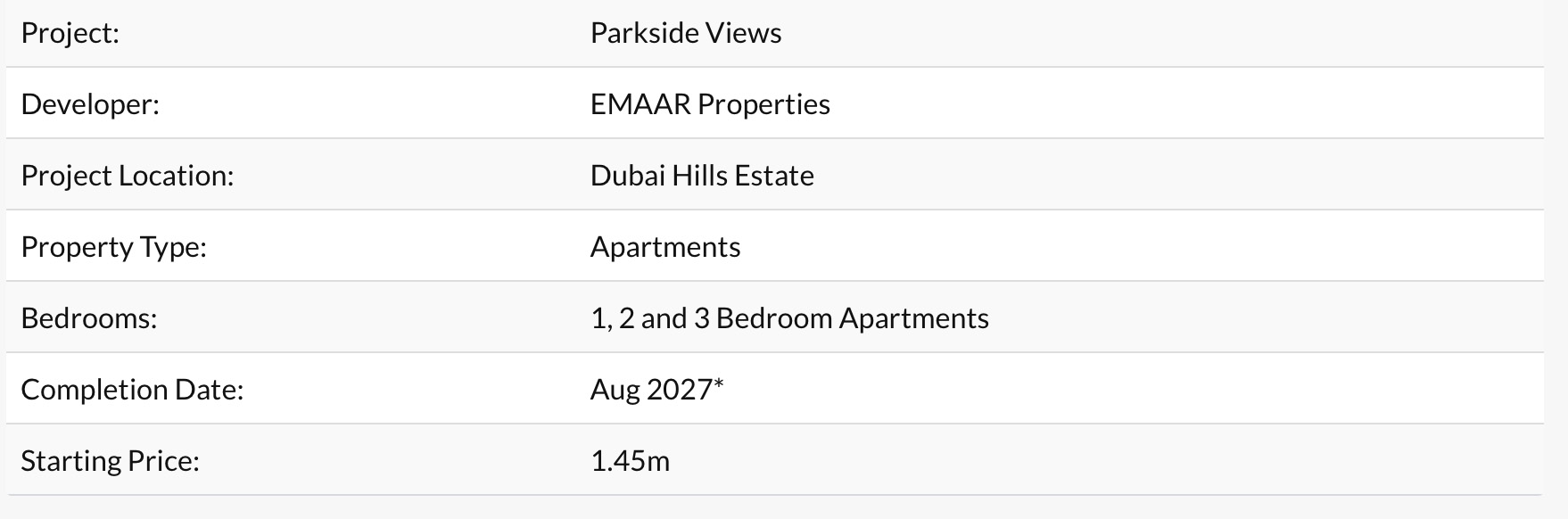 With one-bedroom apartments starting from just 1.45 million AED, Parkside Views is poised to be in high demand.