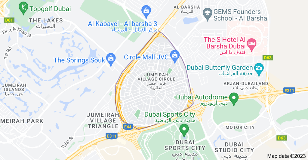 Jumeirah Village Circle, also known as JVC, is an 860-hectare circle-shaped community located in Dubai’s southeast. Surrounded by main arteries such as Sheikh Mohammad bin Zayed Road, Al Khail Road and Hessa Street JVC is just 20 minutes away from Dubai Marina and Palm Jumeirah.